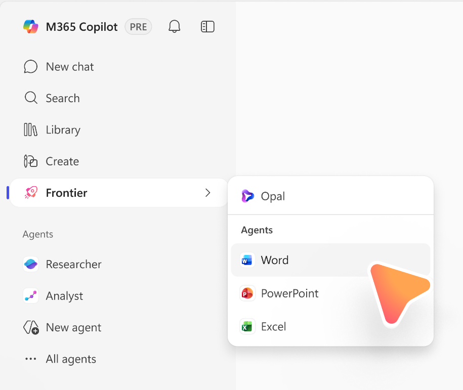 Copilot includes agents for creating documents, spreadsheets, and presentations within Microsoft’s Frontier program.